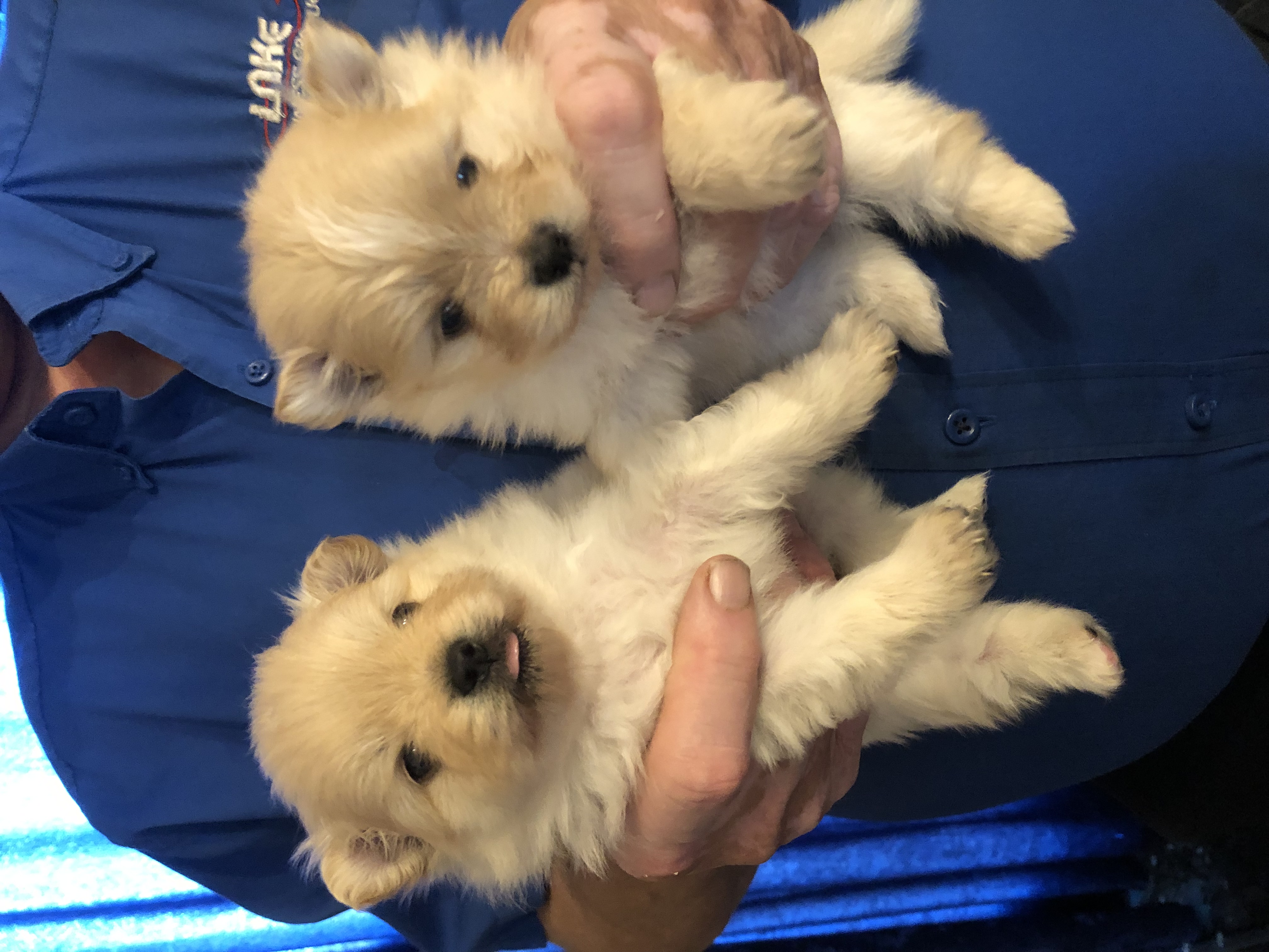 Our puppies are healthy and beautiful, AKC registered, and have champion bloodlines. Check out our photo album page for more pictures. Please contact us for more information. Whether just starting your pom family or adding to it, our puppies will find a special place in your heart and life. Most are approximately $1700-2300 pet price; $400 extra for full AKC for breeding and/or showing privileges; shipping via Delta airlines approximately $400 or nanny transport is $500.